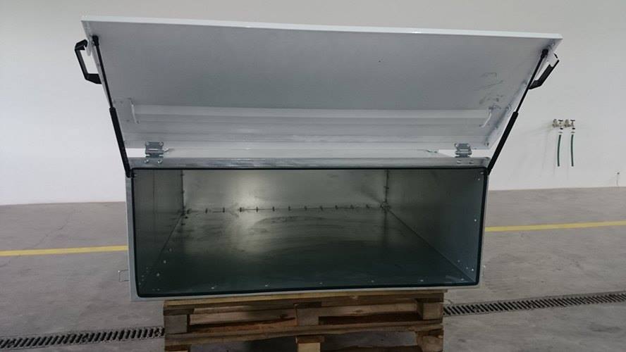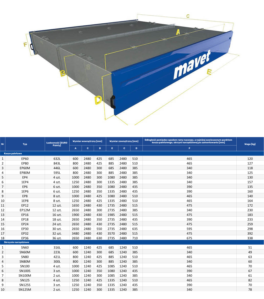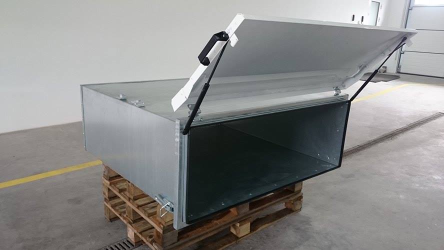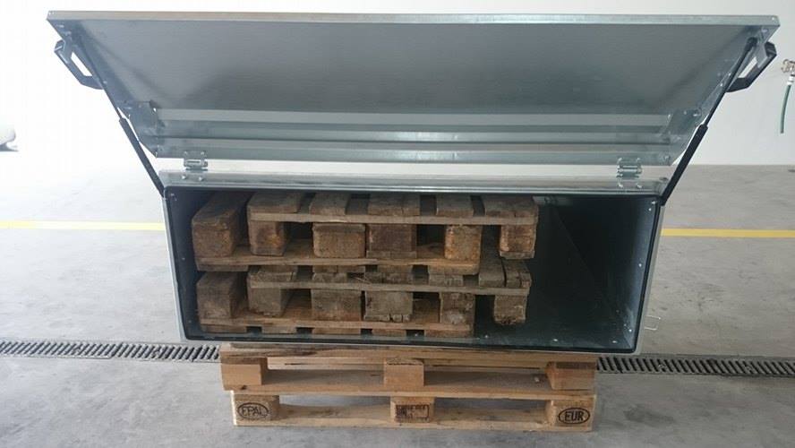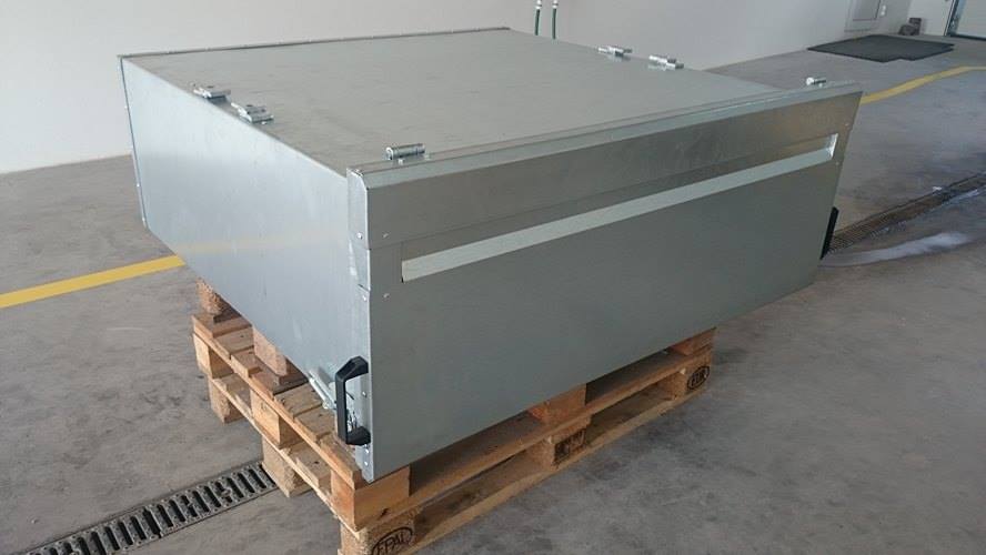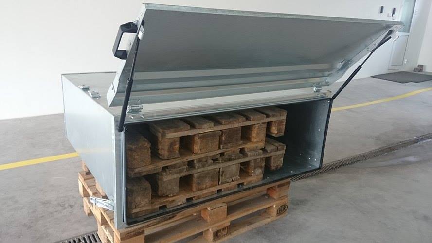 Produkujemy kosze paletowe na europalety. Wykonane z blachy 1.5 mm, ocynkowanej, dzięki czemu uzyskują wysoką odporność antykorozyjną. Kosze wykonane są z jednego arkusza blachy, który po procesie gięcia skręcany jest na silikonie oraz posiada uszczelkę przy pokrywie dzięki czemu zachowana jest szczelność. Pokrywa zamontowana jest na zawiasach które umożliwiają otwieranie jej do góry. Zastosowane sprężyny gazowe ułatwiają bezkolizyjny załadunek i rozładunek kosza. Kosz posiada płaskie ściany oraz spód dzięki czemu większy jest prześwit od nawierzchni co może zapobiec uszkodzeniu. Kosze paletowe posiadają zamki z zabezpieczeniem oraz możliwością plombowania.